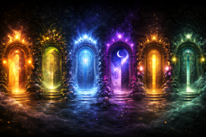 Podívej se na obrázek se šesti mystickými dveřmi. Každé z nich mají jinou barvu, energii a atmosféru. Které tě přitahují nejvíc? Neanalyzuj to příliš dlouho – často je nejlepší dát na první pocit. Tvůj výběr může symbolicky naznačit, jak tě lidé ve tvém okolí vnímají a co ti možná neříkají úplně otevřeně.