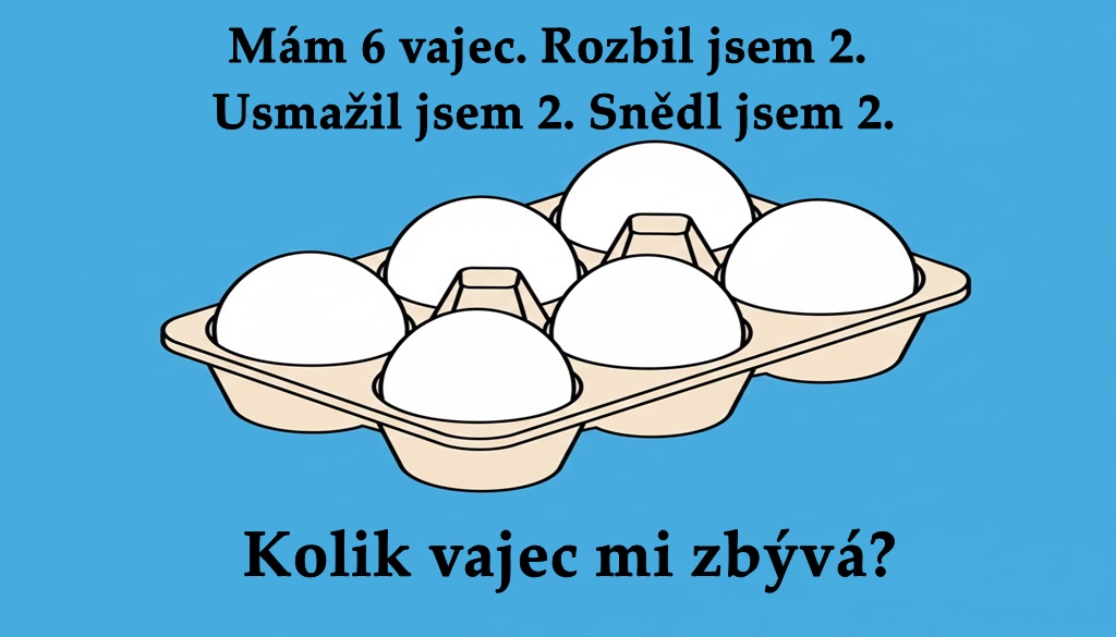 „Mám 6 vajec. Rozbil jsem 2. Usmažil jsem 2. Snědl jsem 2. Kolik vajec mi zbývá?“