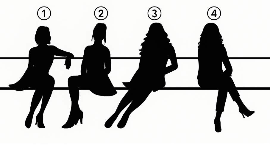 Pokud vás na první pohled zaujala první silueta, pravděpodobně vnímáte sebevědomí jako schopnost zaujmout prostor bez okázalosti. Žena číslo 1 sedí s volně položenou rukou, působí přirozeně a uvolněně.