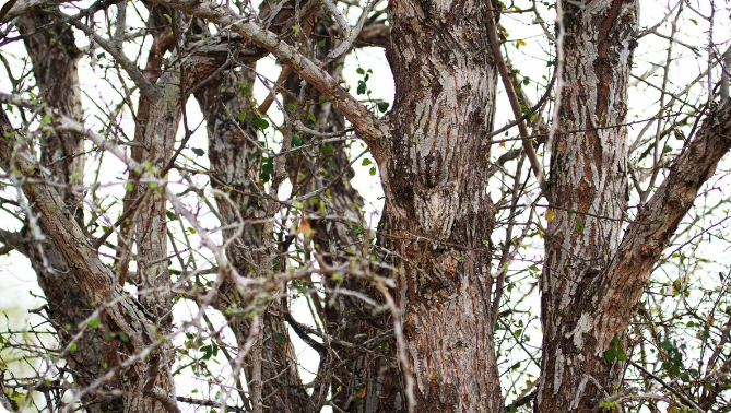 Při procházení krajinou si všiml vysokého stromu. Na první pohled nepůsobil ničím výjimečně. Když se ale podíval pozorněji, uvědomil si, že na kmeni stromu sedí pták, který dokonale splývá s jeho strukturou.