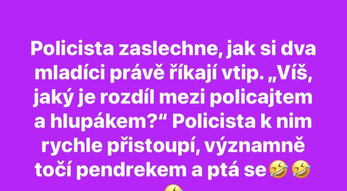 Policista zaslechne, jak si dva mladíci právě říkají vtip. „Víš, jaký je rozdíl mezi policajtem a hlupákem?“ Policista k nim rychle přistoupí, významně točí pendrekem a ptá se: „No tak řekněte, jaký?“ Mladík nesměle sdělí: „Žádný…“