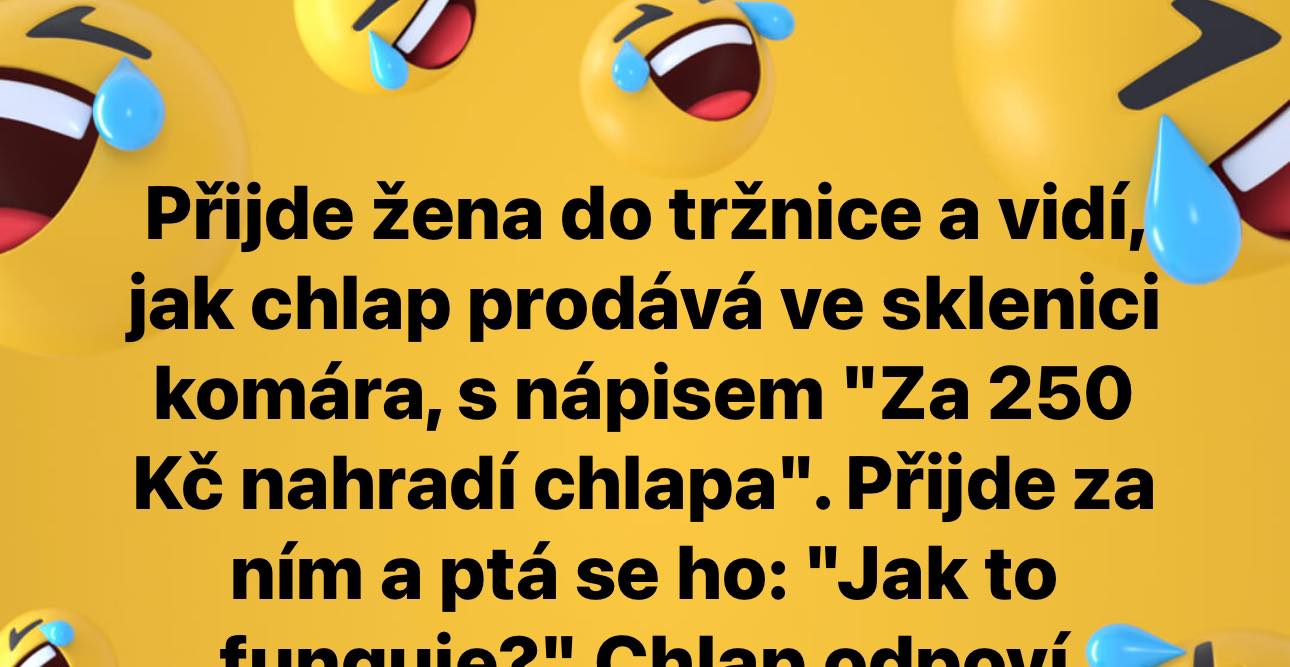 Přijde žena do tržnice a vidí, jak chlap prodává ve sklenici komára, s nápisem „Za 250 Kč nahradí chlapa“. Přijde za ním a ptá se ho: „Jak to funguje?