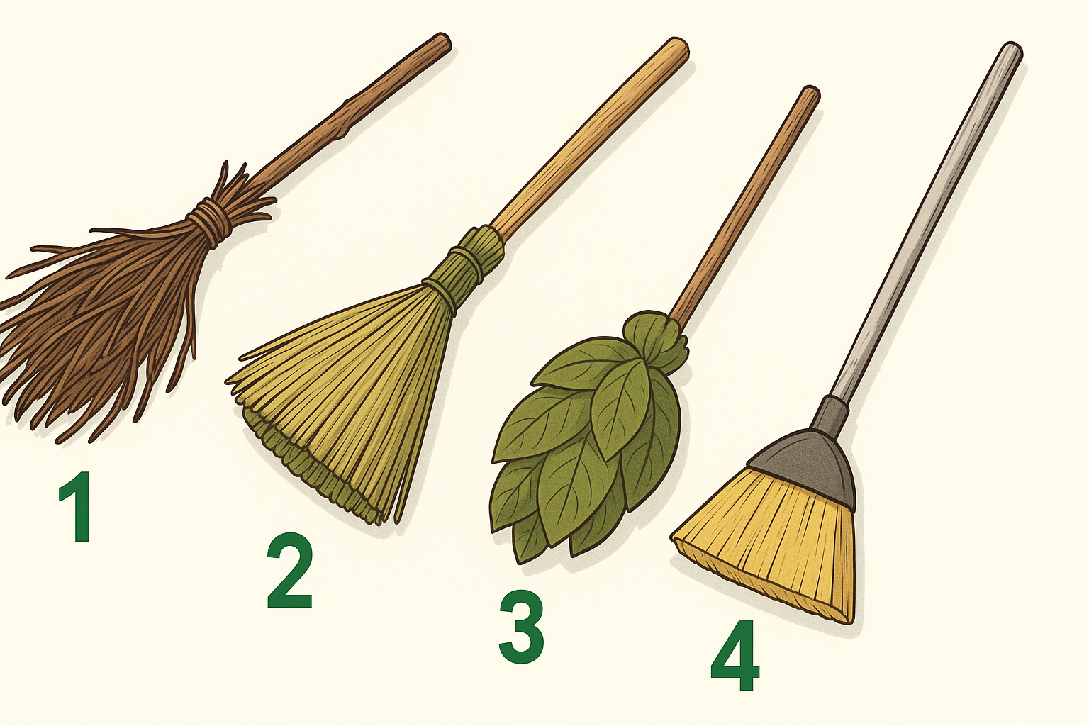 Podívejte se na obrázek čtyř košťat a intuitivně si vyberte to, které vás nejvíc přitahuje. Neanalyzujte to, prostě si zvolte první, které vás zaujme.